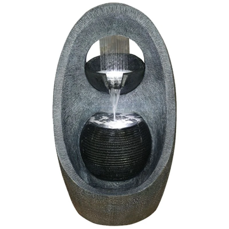With it’s striking water fall feature, this grey contemporary water feature will add a modern and elegant feel to any garden or patio. This mains powered water feature is made from a poly-resin material and features integrated LED lighting. The water pours from the water fall inside the grey styled dome into the LED rippled bowl, lighting up the water feature day or night.