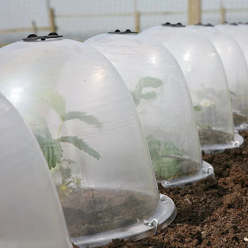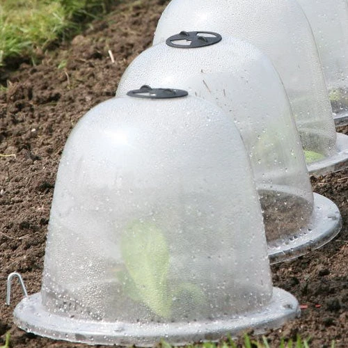 An adjustable air vent in the top of each cloche allows ventilation and humidity control.
